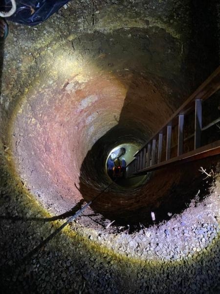 Para realizar o salvamento, os bombeiros utilizaram a escada da viatura para acessar o interior da estrutura. Com técnica e cautela, a equipe conseguiu alcançar a Mel e trazê-la de volta à superfície em segurança.