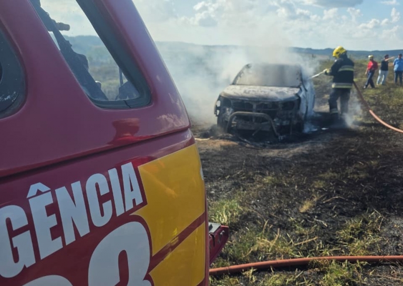 Danos e Combate No local, os socorristas constataram que uma caminhonete Chevrolet S-10 havia sido completamente consumida pelas chamas. O fogo chegou a se alastrar para uma área de vegetação rasteira nativa, mas foi contido precocemente pelos funcionários da propriedade.