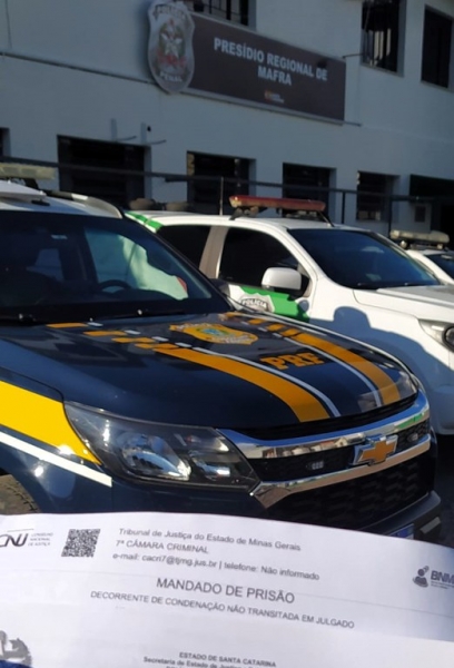 Um foragido da Justiça mineira, de 32 anos, foi capturado pela Polícia Rodoviária Federal (PRF) na tarde deste domingo (8), em Mafra. A prisão ocorreu durante uma fiscalização de rotina no km 7 da BR-116.