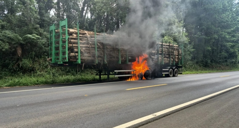 Ao chegarem ao local, os socorristas confirmaram que as chamas estavam concentradas na carga de madeira da carreta bitrem. O fogo teria iniciado nos pneus do veículo e se alastrado para a carga.