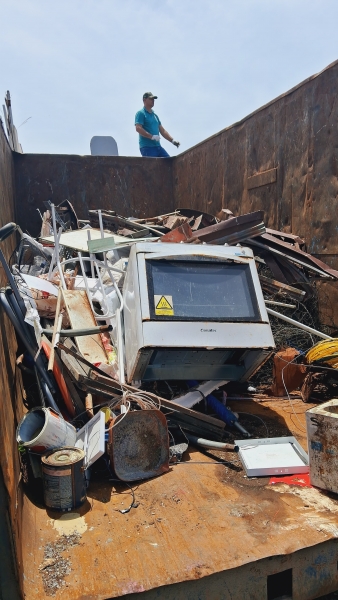 Recicláveis e Sucatas: Madeira, ferro, alumínio, metal, cobre, bronze, vidro, garrafas, papéis, papelão, isopor, latas e plásticos.