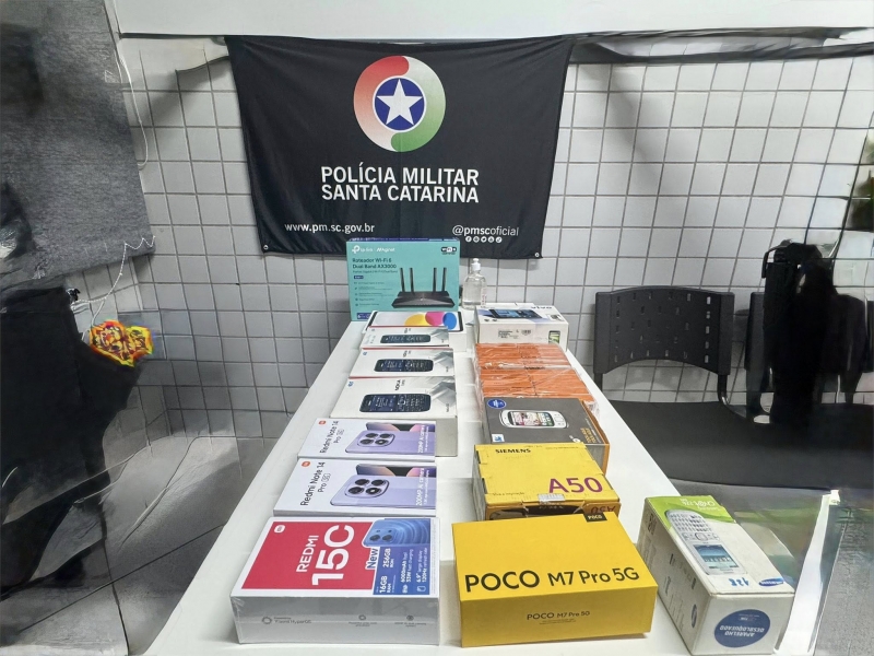 Uma ação rápida da Polícia Militar de São Bento do Sul terminou com a prisão de dois homens e a recuperação de mercadorias na madrugada desta terça-feira (24). O caso ocorreu em uma loja de aparelhos celulares no Centro, por volta da meia-noite, e mobilizou diversas guarnições, incluindo a equipe do Tático.