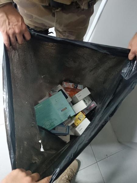 No interior da loja, os policiais encontraram sacos já abastecidos com produtos eletrônicos prontos para o transporte. Além da mercadoria recuperada, foi apreendida uma bolsa de couro contendo o "kit de arrombamento" utilizado pela dupla, composto por: