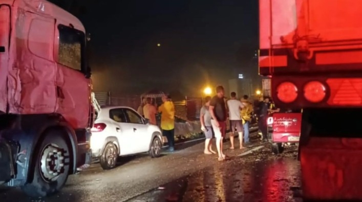 O acidente envolveu carretas carregadas que ficaram atravessadas na rodovia. Equipes de resgate e limpeza trabalharam intensamente durante a madrugada: