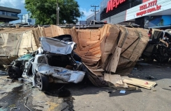 O condutor de 44 anos foi contido por populares após o veículo sofrer danos mecânicos na colisão; teste do bafômetro confirmou alto índice de álcool.