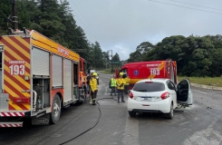 Equipes de resgate depararam-se com o acidente enquanto retornavam de outra ocorrência na BR-280; houve princípio de incêndio em um dos veículos.