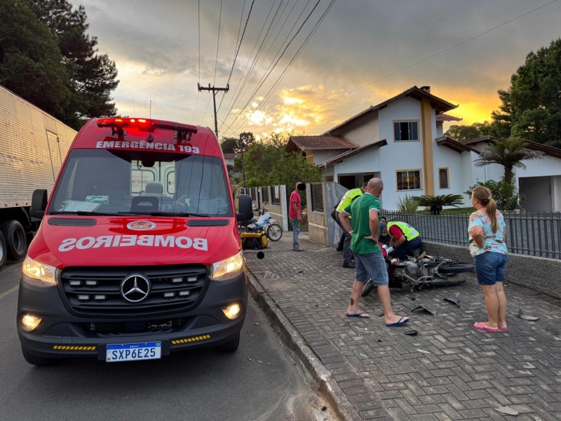Um adolescente de 15 anos ficou seriamente ferido após uma colisão na rua Paulo Tschoeke, Bairro Mato Preto, em São Bento do Sul, na noite desta quarta-feira (14). O jovem, que pilotava uma Honda Biz, foi atingido por um Renault Sandero por volta das 19h.