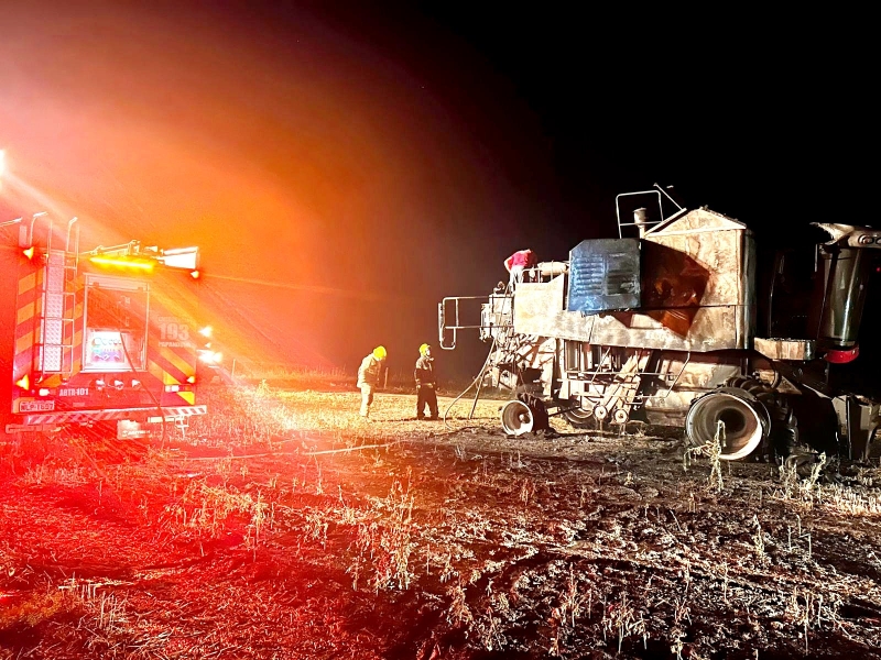 Rescaldo e Segurança Os bombeiros realizaram o rescaldo do maquinário, utilizando aproximadamente 1.000 litros de água para extinguir focos remanescentes e resfriar a estrutura, garantindo que o fogo não atingisse o restante da colheita. Apesar dos danos materiais, ninguém ficou ferido, e o local foi liberado sob responsabilidade do proprietário.