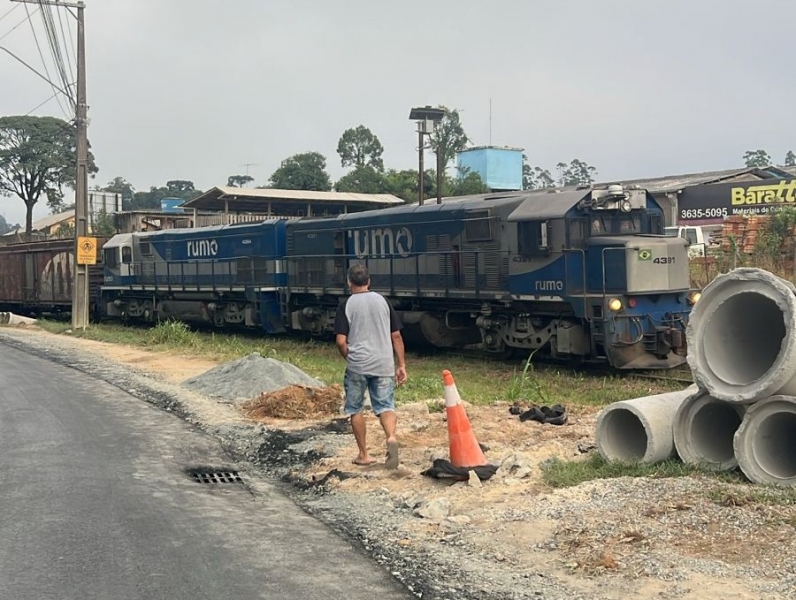 O início da manhã desta segunda-feira (30) foi de muita paciência e transtornos para os moradores e motoristas que precisavam acessar ou sair do bairro Serra Alta. Uma composição ferroviária parou sobre os trilhos nas proximidades do Posto Zandoná, bloqueando as principais passagens de nível e isolando parte da região.