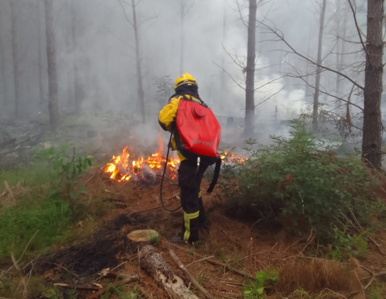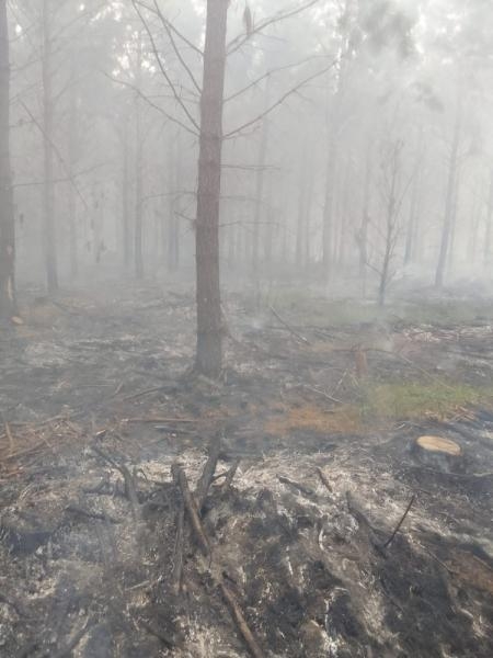 Ao chegarem no local, próximo à Fazenda Batatais, os bombeiros constataram que o fogo se propagava rapidamente pela vegetação rasteira sob a plantação de pinus, cobrindo uma vasta extensão de terra.
