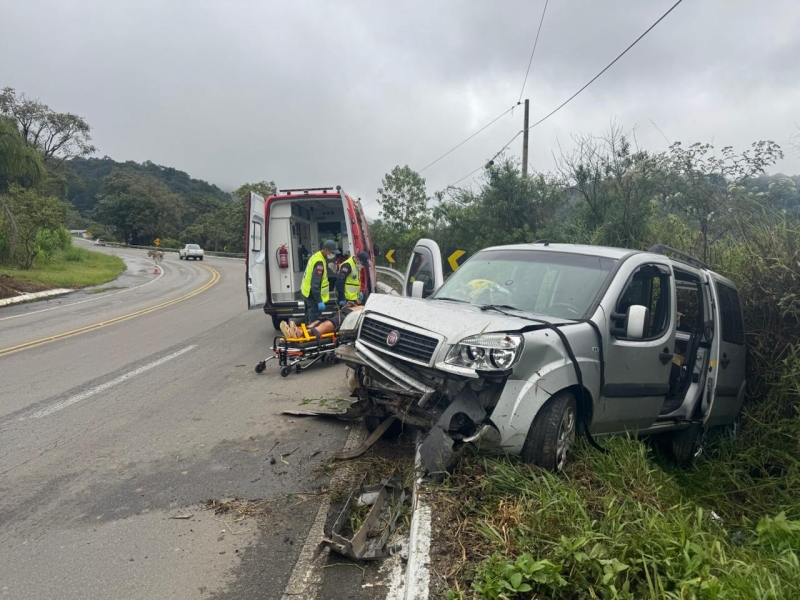 Motorista é socorrida após saída de pista na BR-280, em São Bento do Sul