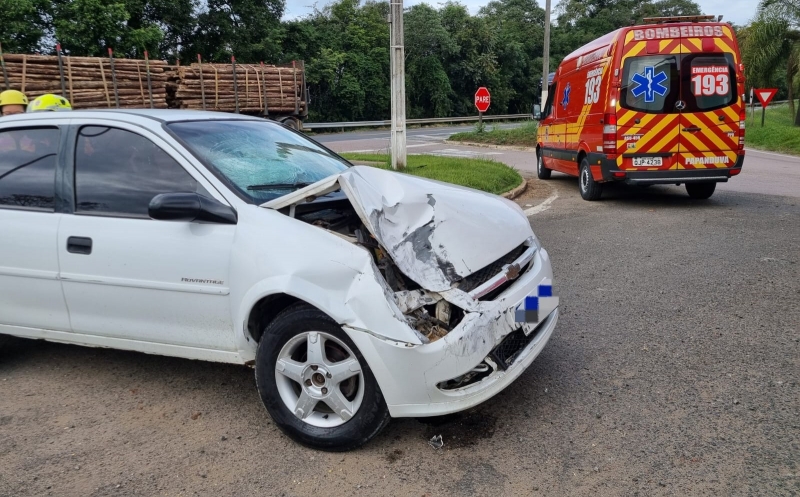 Na manhã desta terça-feira, 21 de abril, o Corpo de Bombeiros Militar de Papanduva foi acionado para atender uma ocorrência de acidente de trânsito no km 59 da BR-116, no trevo de acesso à rodovia SC-477, na localidade de Queimados. Por volta das 08h22, as guarnições das viaturas ASU-459 e ABTR-101 deslocaram-se até o ponto indicado, onde confirmaram uma colisão do tipo frontal e lateral envolvendo um automóvel Chevrolet Classic e uma carreta tracionada por um cavalo mecânico Volvo FH.