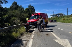 Durante a avaliação física, a guarnição identificou uma suspeita de fratura na região distal do membro inferior esquerdo, além de escoriações na face e dores intensas na perna direita. Seguindo os protocolos de segurança, a vítima foi imobilizada com o uso de colar cervical e maca rígida pela equipe da viatura ASU-512, sendo transportada imediatamente ao hospital para avaliação médica especializada. Após a conclusão do resgate, a cena e a segurança do tráfego ficaram sob responsabilidade da Polícia Militar de Santa Catarina, que já se encontrava no local.