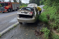 Equipes de resgate depararam-se com o acidente enquanto retornavam de outra ocorrência na BR-280; houve princípio de incêndio em um dos veículos.