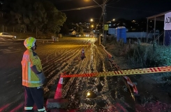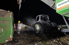 Fogo atingiu o maquinário agrícola durante a noite desta segunda-feira (23); equipes de Canoinhas e Major Vieira atuaram no combate às chamas.
