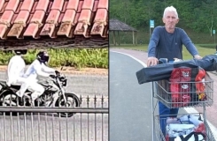 Vítima foi chamada no portão de casa e atingida por cerca de oito disparos; autores fugiram e incendiaram a motocicleta usada no crime.