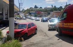 O condutor de 44 anos foi contido por populares após o veículo sofrer danos mecânicos na colisão; teste do bafômetro confirmou alto índice de álcool.
